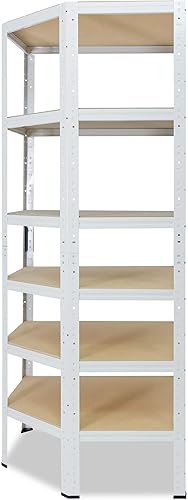 200x70x40cm HOME scaffale angolare metallo carichi pesanti bianco 6 ripiani/Scaffale metallo 145kg capacità carico/Mensola scaffale angolare/Scaffali in metallo per garage