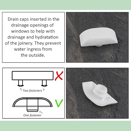 C65137 - Set di 10 tappi di drenaggio/protezione tempesta con 2 clip 36x14mm per telaio finestre - ugello/cappuccio - in plastica - fissaggio acqua - colore bianco