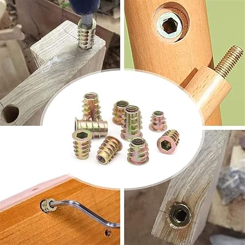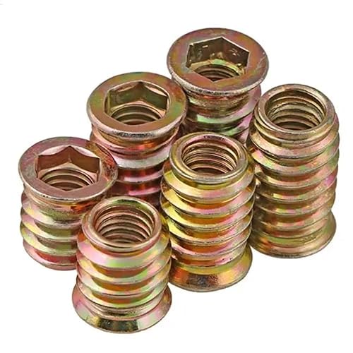 Dadi esagonali M8 per legno con inserto filettato, boccole esagonali flangiate (tipo D), per mobili in legno, armadi, scarpiere, librerie, fai da te, M8 x 25 mm (confezione da 10)