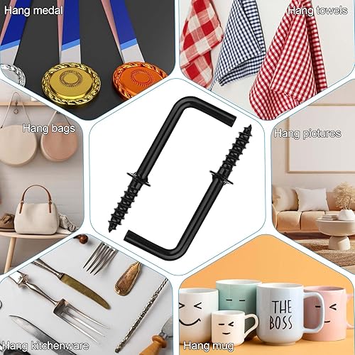 100 Ganci a Vite, 30 mm, Gancio a L, da Parete, Piccolo Gancio da Avvitare per Immagini e Mobili (Nero)