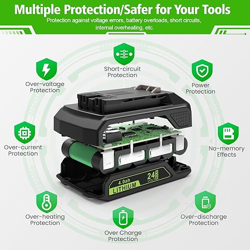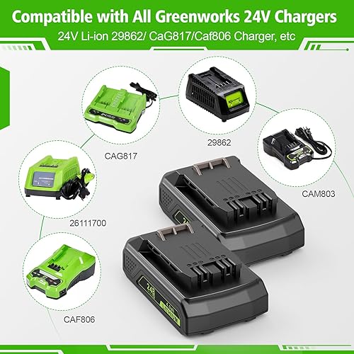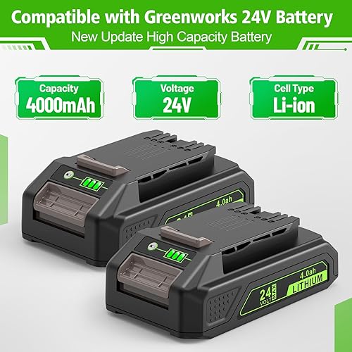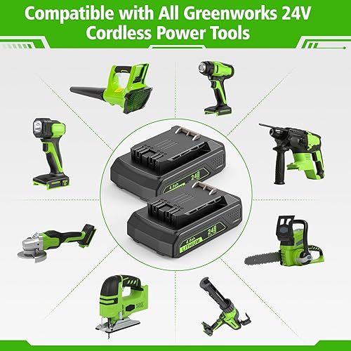 LabTEC 2 Packs GW2430 Batteria 24V 4000mAh Sostituzione per Greenworks 24V (NON per 48V) Batteria 29842 29852 29322 29862 2938202 26111700 CAM803 Cordless Power Tool con indicatore luminoso