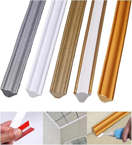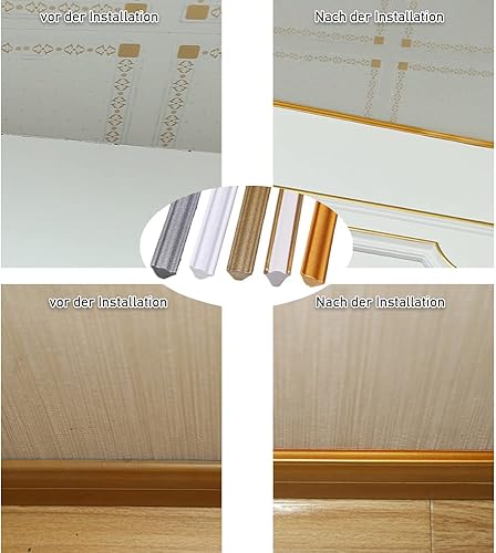 Modanature decorative autoadesive, 300 cm, listello decorativo, autoadesive, flessibili, per soffitto, autoadesive, da parete (M-argento-3M)