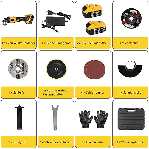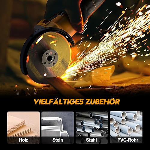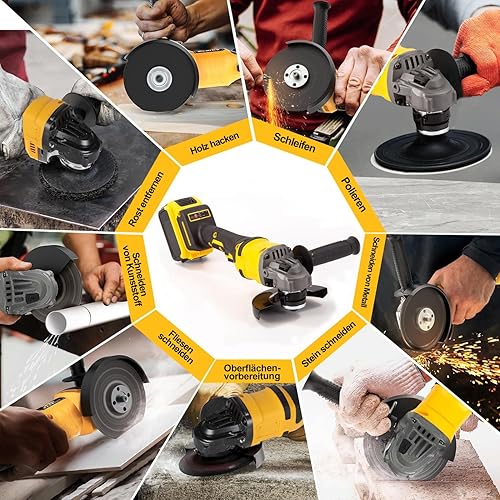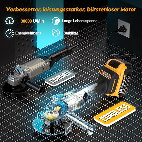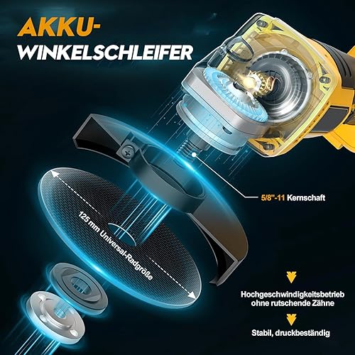 Smerigliatrice angolare a batteria, professionale, 21 V, set elettrico con 2 batterie da 5 Ah, diametro disco 125 mm, 30,000 giri/min, motore senza spazzole, 3 velocità, per separazione, levigatura e