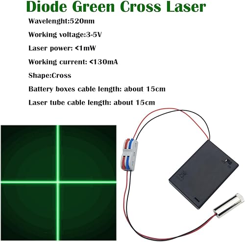 1 Pcs 520nm 3-5V Croce Verde Laser Modulo, Focus Regolabile Laser Testa, 1 pcs morsetti elettrici, 1pcs Batterie AA Custodia (Forma della sorgente luminosa: croce)
