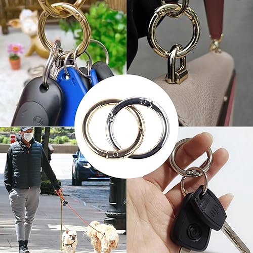 16 Pezzi Moschettone Tondo Moschettoni Piccoli in Metallo O Ring Fibbia a Scatto Anelli Diviso a Molla in Argenti Dorato per Portachiavi Zaino da Appendere Ornamento Fai-da-te