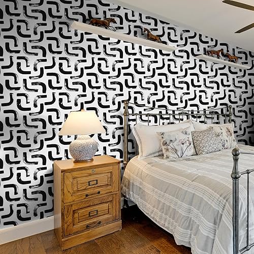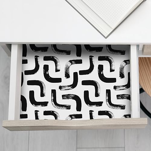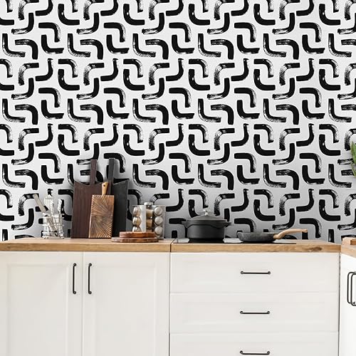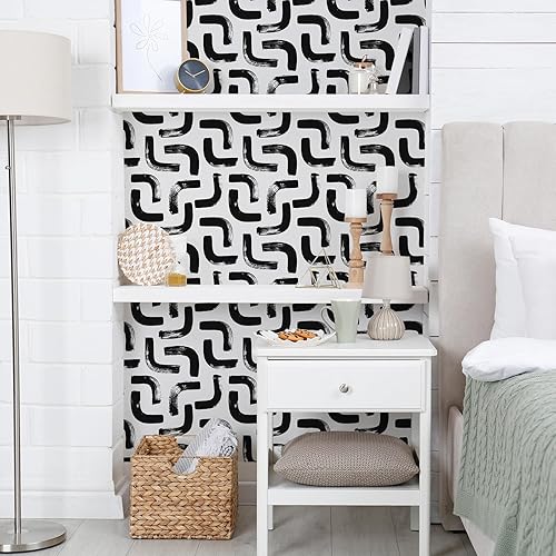VaryFloral Carta da parati bianca e nera con pellicola adesiva e pellicola adesiva 30,5 cm x 300 cm, carta da parati astratta, acquerello bianco geometrico nero carta da parati adesiva in vinile
