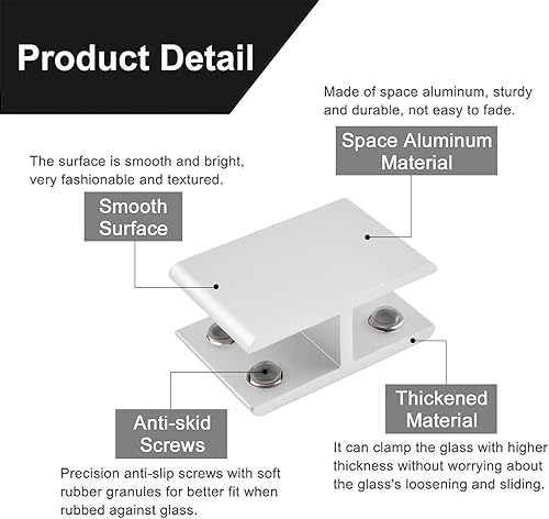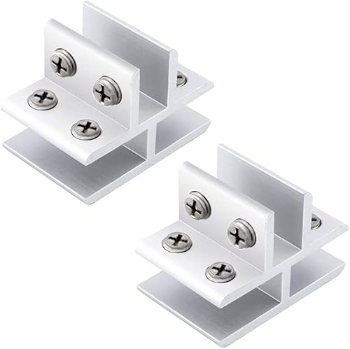 2 morsetti per vetro, regolabili, forma a T, 3 lati, in lega di alluminio, supprti per staffe per vetri di 10-12 mm di spessore, 180 gradi