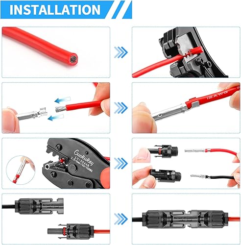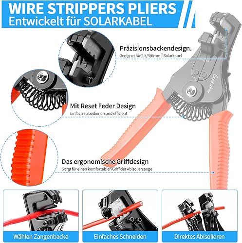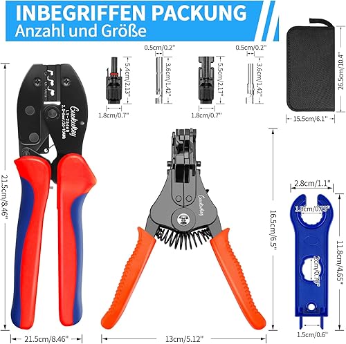 Set di pinze crimpatrici solari per cavo solare PV da 2,5/4/6 mm², 1 pinza crimpatrice + 1 pinza spella+10 paia di cavi solari+9 paia di connettori solari maschio/femmina+2 chiavi