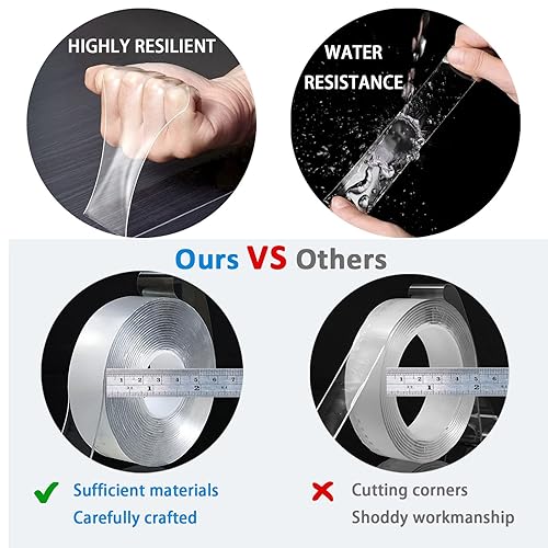 4 Rotoli Nastro Biadesivo Extra Forte Nano Nastro Biadesivo Rimovibile Multifunzione Trasparente Biadesivo Non Lascia Tracce Nastro Adesivo di Montaggio Per Foto Poster Tappeti Muro Casa (12m)