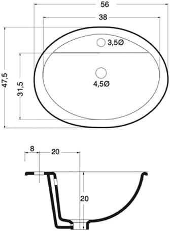Lavabo sopra-piano con foro rubinetto 57x49cm - LS65