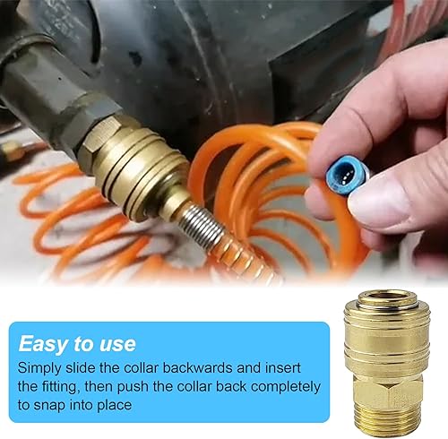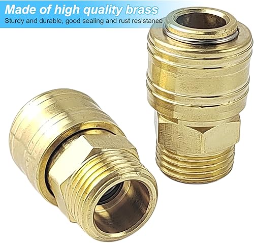 2 Pezzi Attacco Rapido Aria Compressa 1/2 Pollice, Raccordi Aria Compressa Raccordi in ottone, Attacchi Rapidi Aria Compressa, per il collegamento rapido delle linee d'aria (colore ottone)