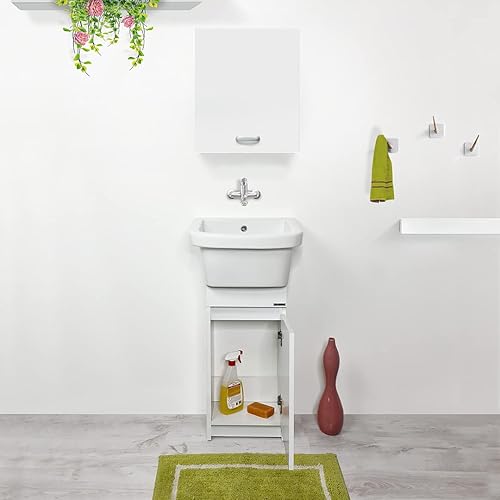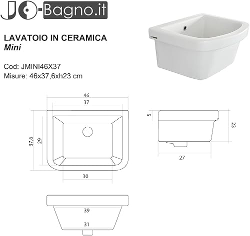 Jo-Bagno.it Mobile con Pilozzo Bucataio in Ceramica 46x36 Lavatoio MINI di Piccole Dimensioni per Lavanderia Sifone e Piletta Inclusa