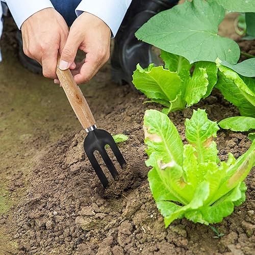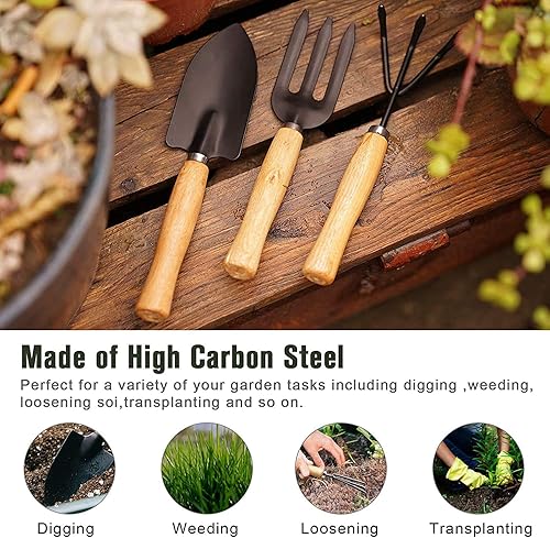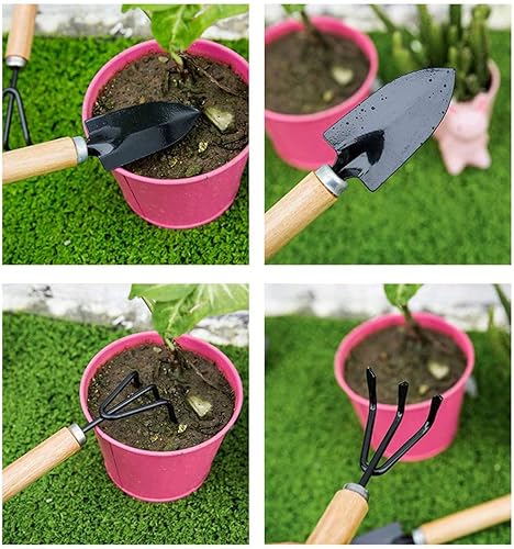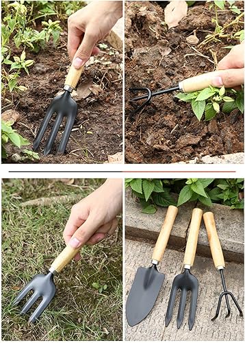 Mini Attrezzi da Giardinaggio Mini Set per Piantare Nero Piccola Rastrello Pala e Vanga Manici—3 Pezzi