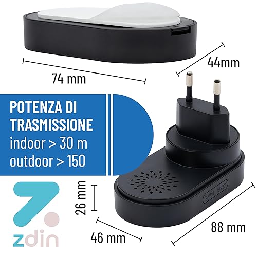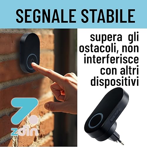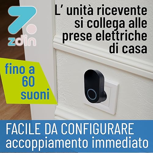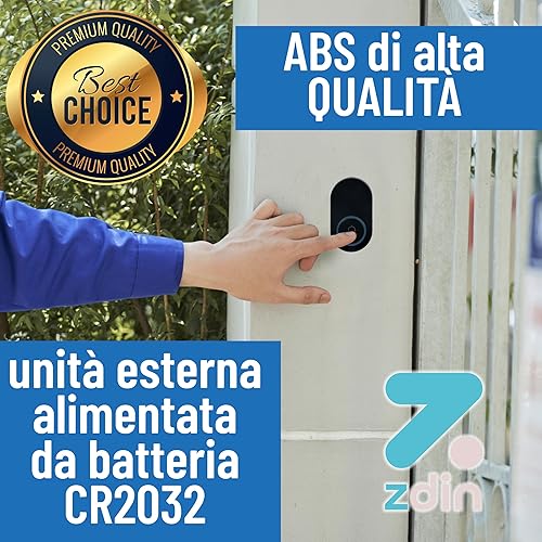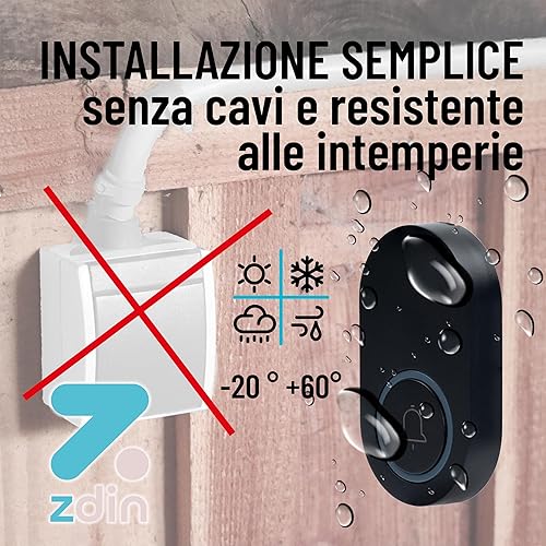Campanello Senza Fili da Esterno Volume Fino a 250 dB 60 Suonerie e Led con Copertura Fino a 150 mt - Batterie Incluse