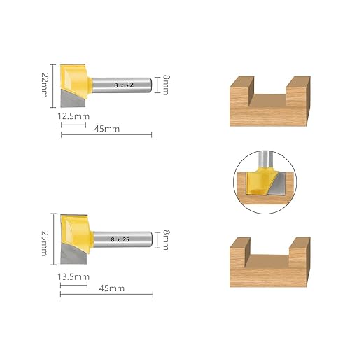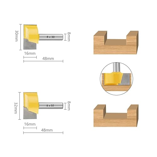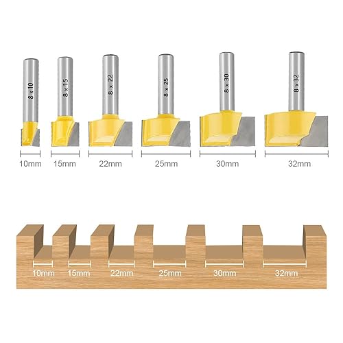 Frese per Legno Gambo 8mm, 6 Pezzi Fresa per Spianare Legno, Fresa a Taglienti Diritti, Punte da Taglio Legno in Metallo Duro, 10/15/20/22/30/32mm Punte per Fresatura, per Legno Mobili di Bricolage