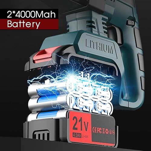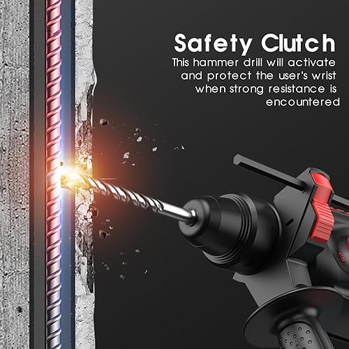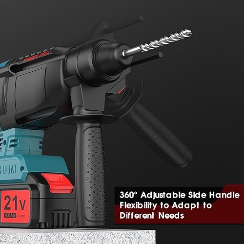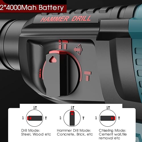 Martello Perforatore a Batteria, Martello Tassellatore a Batteria, Martello Demolitore con Frizione di Sicurezza e Controllo delle Vibrazioni, 4 in 1 Funzion, 2 * 4000mAh Batteria