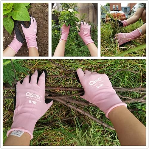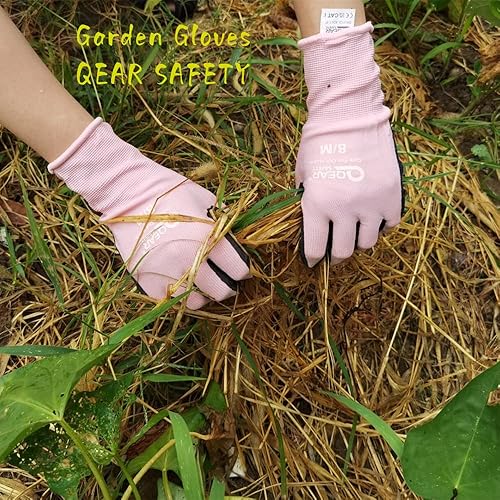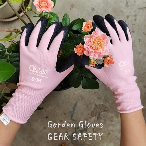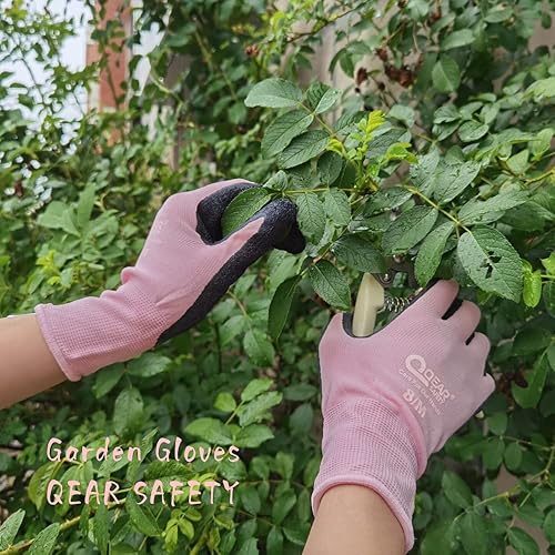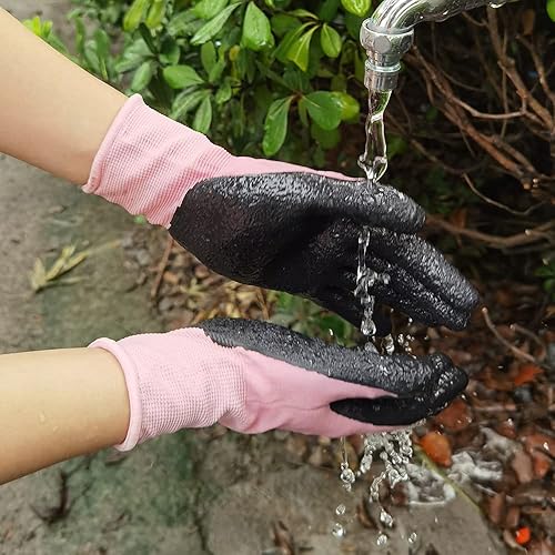 3 paia di guanti da lavoro da giardino da donna, rosa, rivestimento in lattice con palmo, funzione muti, abrasione, adatti a mano, giardinaggio, lavori domestici