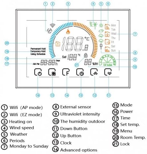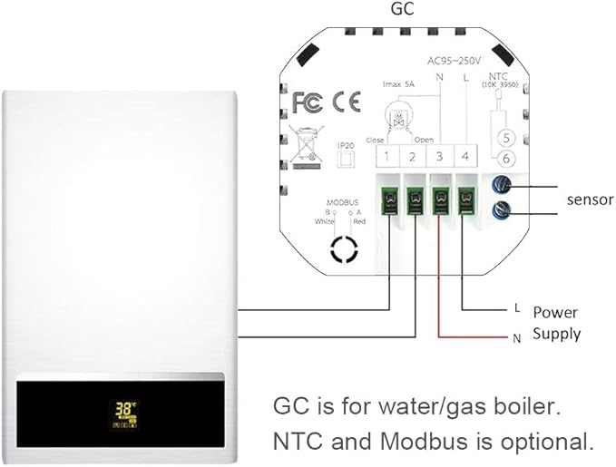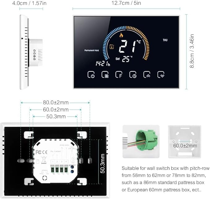 Termostato Smart Wi-Fi per riscaldamento - contatto pulito - con display LCD a colori adatto a scatola 503 - compatibile con Alexa e Google Home e IFTTT - aggiornamento firmaware marzo 2021