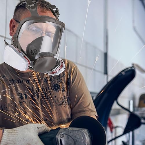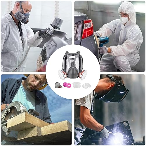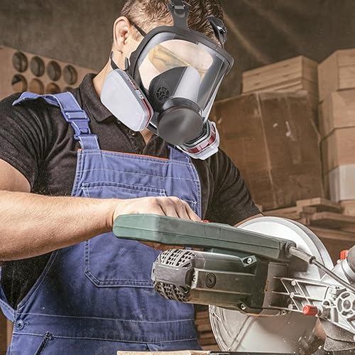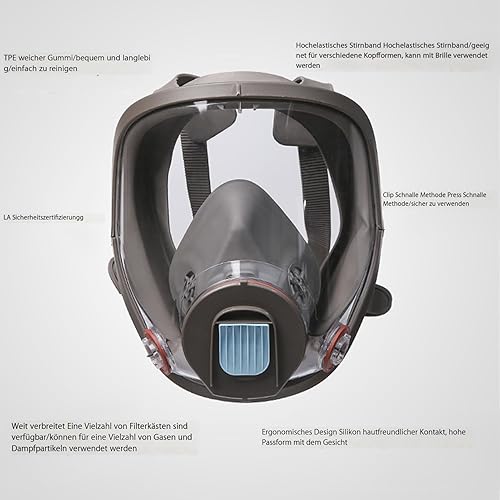 Maschera Respiratore Viso Con Filtro, Riutilizzabile 6800 Respiratore Viso Full Face Maschera Antiappannamento Anti-Nebbia Contro Fumi Organici Gas Respiratore