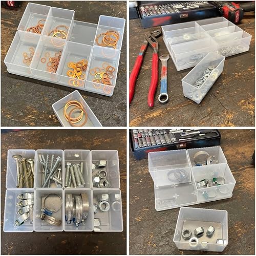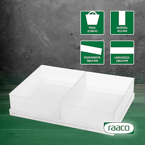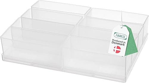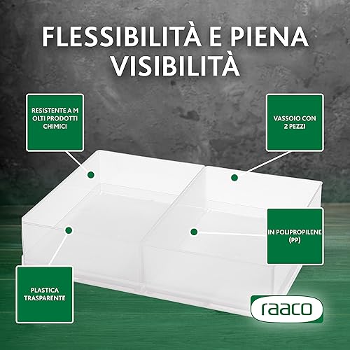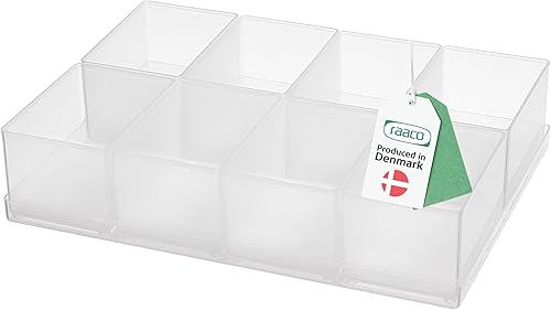 raaco Vassoio Porta Minuteria 55 8xA8-1, Vassoio con 8 Scomparti, Scatola Trasparente per Attrezzi, Organizer Viti, Cassetti & Conservazione di Piccoli Componenti, Facile da Pulire, 16 x 22 x 4,7 cm