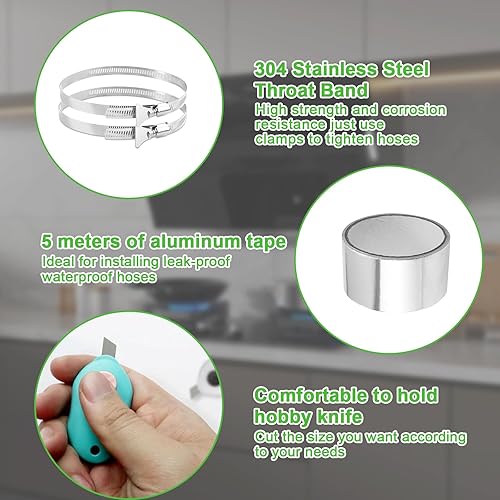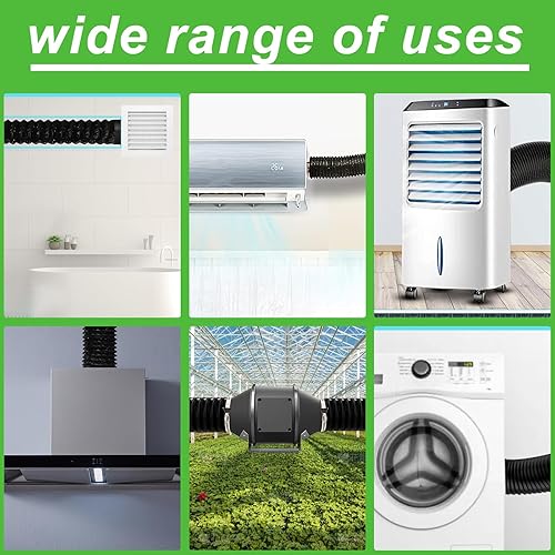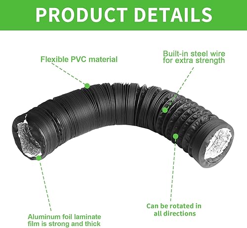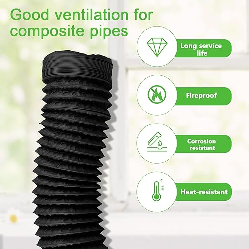 80mm Nero Tubo di Scarico 6 m Condotti Tubo di Ventilazione Flessibile in Alluminio PVC con 2 Fascette Stringitubo in Acciaio per Aria Condizionata, Asciugatrice, Cappa Aspirante
