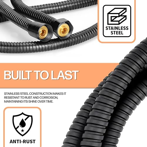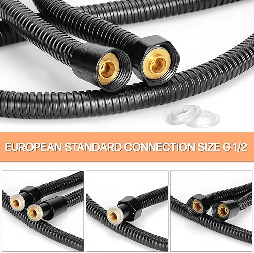 Tubo doccia nero 2m acciaio inossidabile flessibilita superiore con rinforzo Resistente alla torsione e all'usura Compatibilita universale tubo per doccia nero tubo doccia flessibile nero