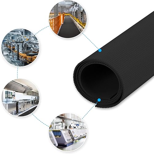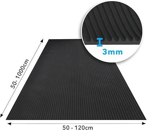 Tappetino di gomma fine scanalato tappetino, 3 mm, gomma corridore protettivo tappetino antiscivolo pavimento copertura, fine nervato (nero, 100 x 200 cm)