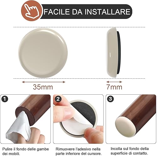 16 PCS Scivoli per Mobili,Piedini per Sedie,Piedini per Mobili Autoadesivo per Spostare Mobili(Rotondi, 19mm)