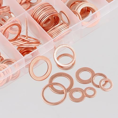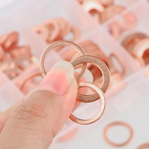 Set di 200 Rondelle Rame, O Ring Guarnizioni, Rondelle Piatte, Rondelle Alzaporta, 9 Specifiche Applicabili a Strumenti Elettronici, Parti Hardware, Macchinari di Precisione