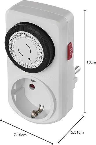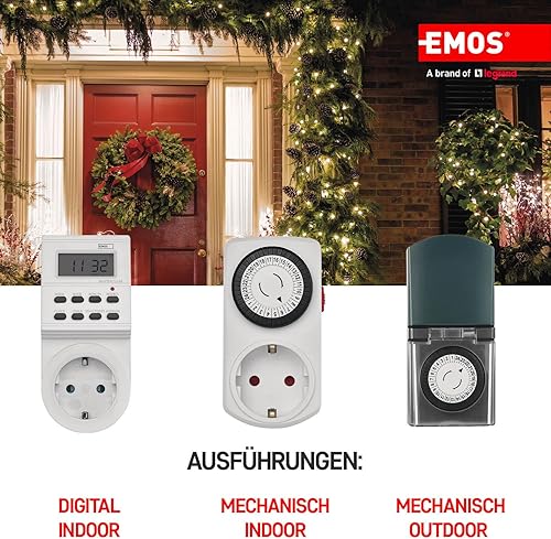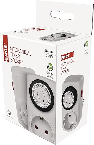 EMOS Timer meccanico Schuko con interruttore, presa interna programmabile con 48 cicli ciascuno 30 minuti, protezione da contatto elevata, bianco