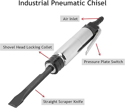 Set di scalpelli 3 pezzi, scalpello pneumatico a scalpello (dritto/ad arco), 1,5J/min 60Hz/min Martello da scalpello pneumatico resistente all'usura durevole con cilindro in lega, per lavori correttiv