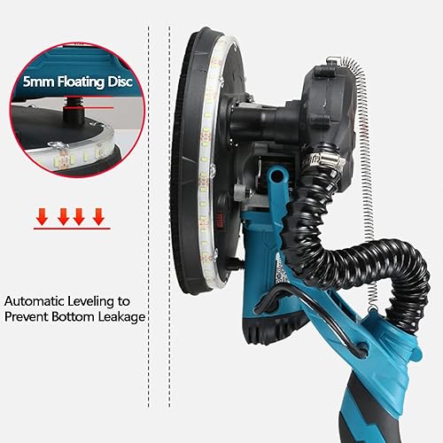 Levigatrice per Muro, 1800W, 1000-2100rpm/min, Manico Telescopico 130-200cm, Luci LED, Aspiratore, 50 Sandpaper Inclusi
