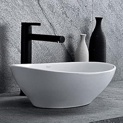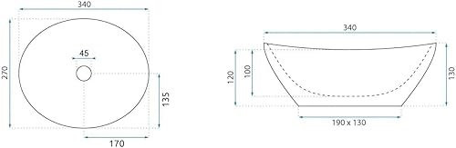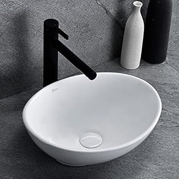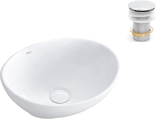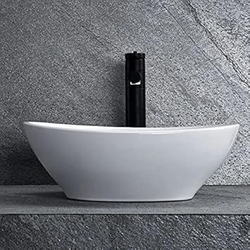 VBChome Lavabo piccolo + pop-up Click-Clack cromato, 34 x 27 x 13 cm, in ceramica, colore bianco, ovale, lavabo, lavabo da appoggio, lavabo per ospiti, WC