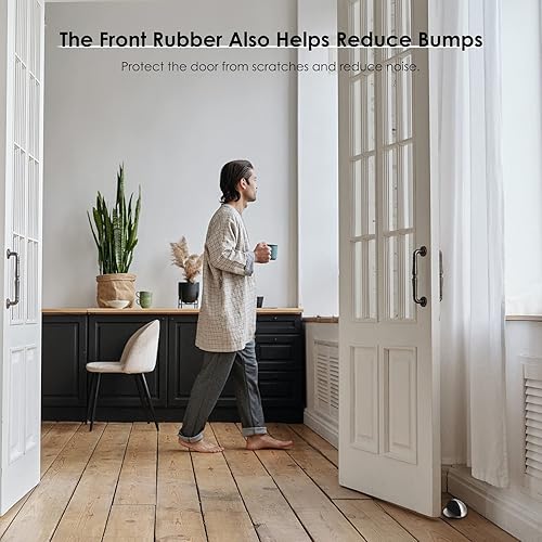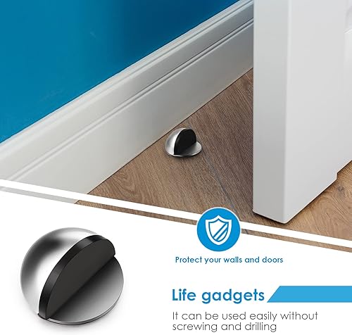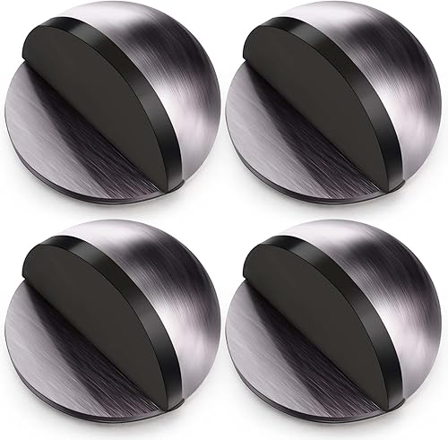Hotop Fermaporta da Pavimento Autoadesivo Fermaporta Ovale in Acciaio Inox Protezione da Parete Montata a Pavimento Ferma Porta a Mezzaluna Semicircolare Lucido con Colle (Grigio,4 pz)