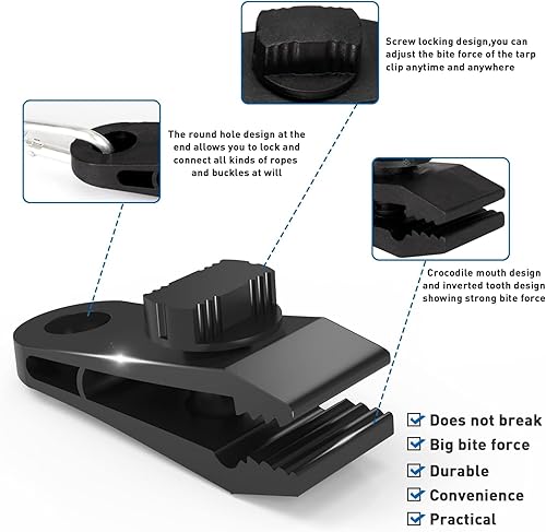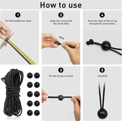 Set di 20 Clip per Telone, 10 Tenditori, Fissaggio per Carichi Pesanti, Linoleum, Tenda in Plastica, 5 m, Elastici Con Sfera (10 Pezzi)