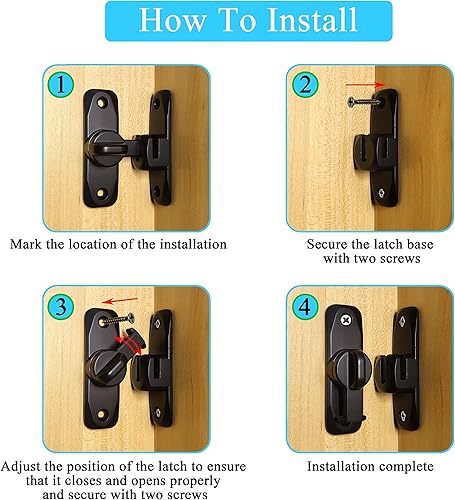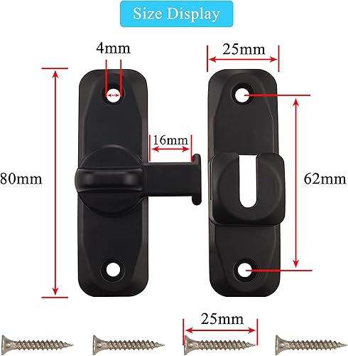 Piccola Serratura per Porte Scorrevoli a 90 Gradi per Porte Interne, Chiavistello per Porte ad Apertura su Entrambi i Lati, Serratura Vintage per Cucine, Camera da Letto, Studio, Bagni (Oro)
