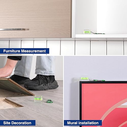 WORKPRO Mini livella bolla 3 pezzi, 34 x 22 x 13mm livella a bolla con anello portachiavi in vetro acrilicoper macchina fotografica, la casa, la lavorazione del legno, il livellamento dei mobili