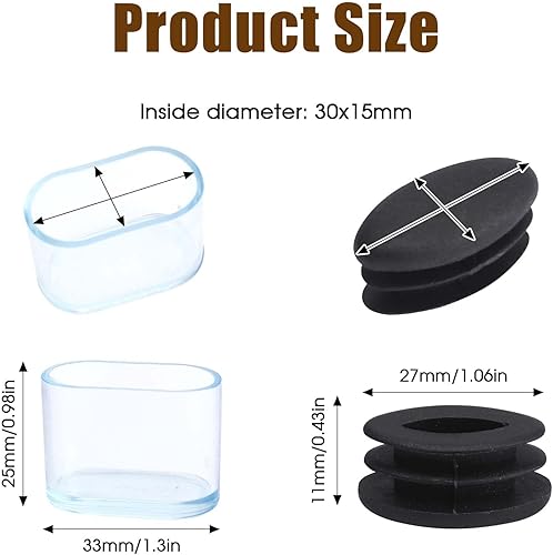 Coprigambe Sedie Gommini per Sedie Quadrati Tappi Sedie Silicone Piedini Sedie Silicone per Sedia Scrivania 15 mm x 30 mm Gommini Sedie Silicone per Proteggere i Pavimenti da Graffi e Rumori (60 Pz)