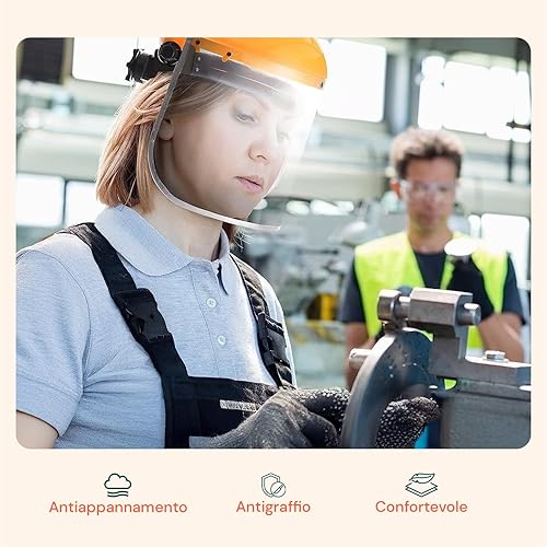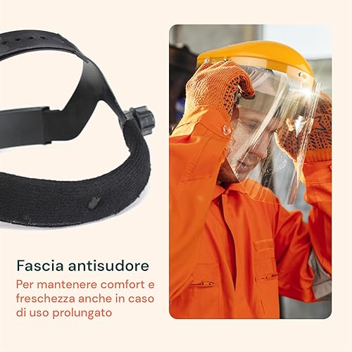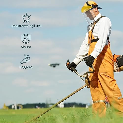 Visiera Decespugliatore – Visiera Protettiva in Plexiglass con Copricapo HDPE, Regolazione a Cricchetto e Fascia Antisudore