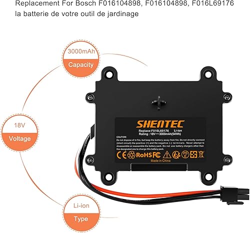 Shentec Batteria agli ioni di litio da 18V, 3000mAh, compatibile con Bosch Indego 350, 400, M 700, M+ 700, S+ 350, S+ 400 robot tosaerba