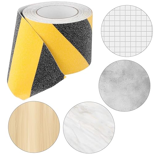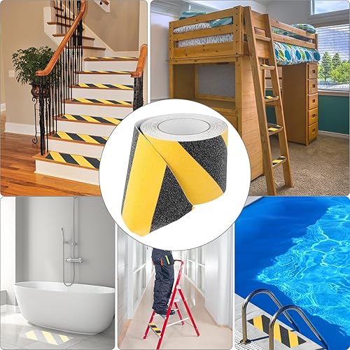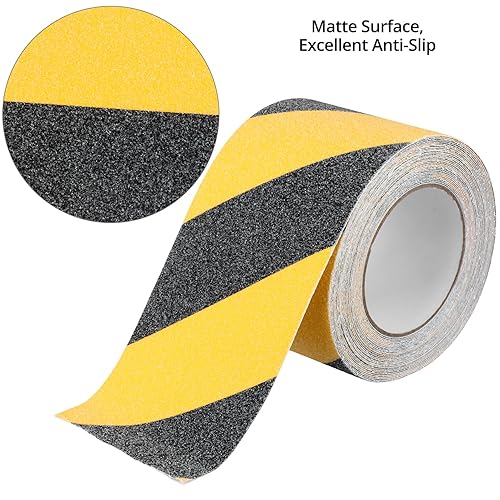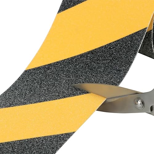 QWORK® Nastro antiscivolo nero e giallo, nastro adesivo antiscivolo, 100 mm x 10 m, per gradini per scale interne ed esterne