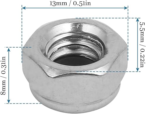 M8 x 1.25mm Hex Lock Dado x 4pz 304 Stainless Steel Left Hand Filettatura Blocco Inserito Esagonale Dado Elementi di fissaggio per Macchinari Fissaggio, [Argento Tono]