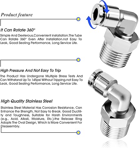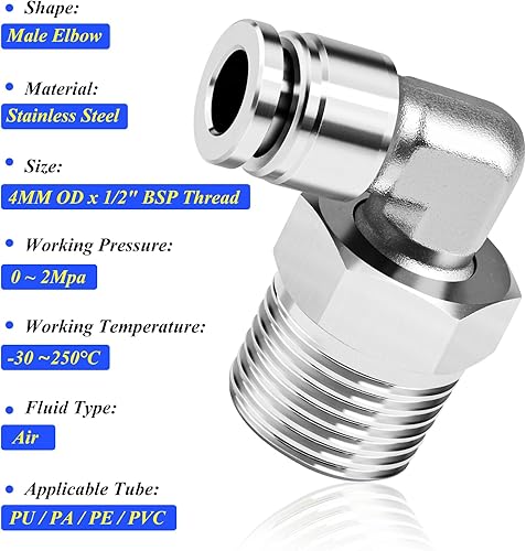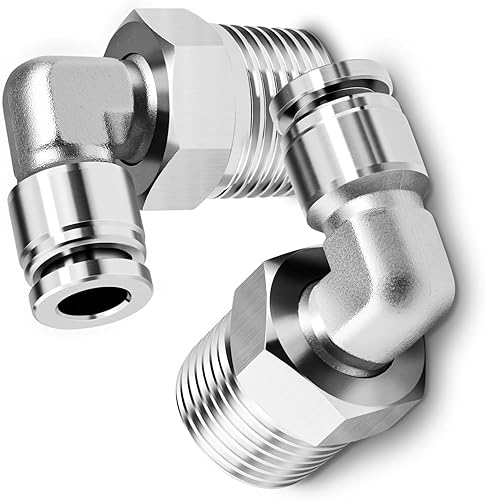 304 Gomito maschio in acciaio inox 6 mm OD tubo x M5 filettatura 90 Raccordi push to connect PL5-M5 (confezione da 2)