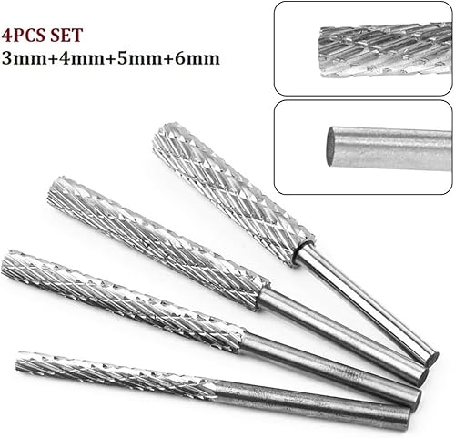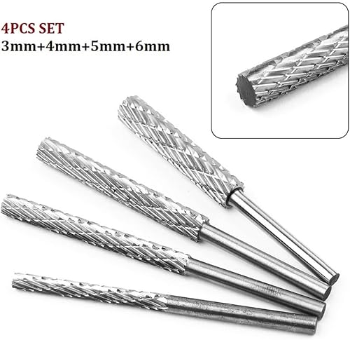 Set di 4 raspe rotanti con gambo da 3 mm, in acciaio super rapido, per intagliare il legno e la lavorazione del legno, per la lavorazione del legno e la foratura