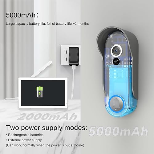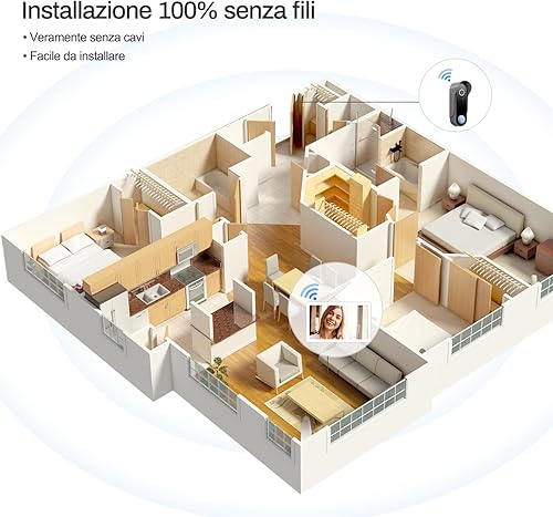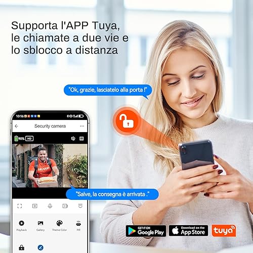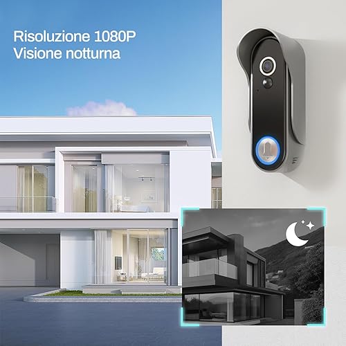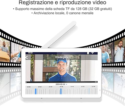 Wifi Videocitofono Senza Fili 1080p HD Ultrasottile da 8 Pollici,Supporto APP 'TUYA', Telecamera a 160 Gradi,Visione Notturna,Rilevamento del Movimento PIR,Archiviazione Video Gratuit,IP65