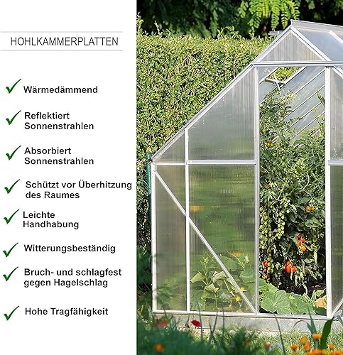 Pannello a camera cava da 10,25 m², 14 piastre da 60,5 x 121 cm, pannelli doppi in policarbonato, per serre e modellismo (spessore: 6 mm, trasparente)