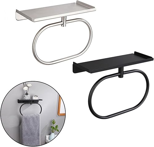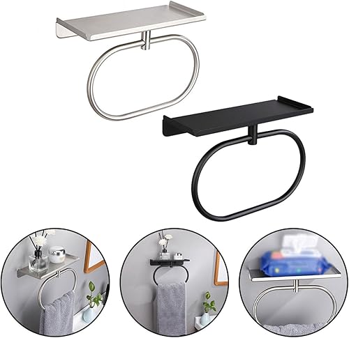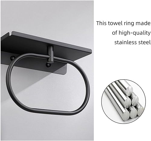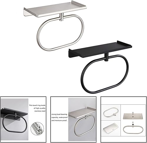Portasciugamani senza foratura, anello per asciugamani in acciaio inox per bagno senza punzonatura scaffale ovale (argento)