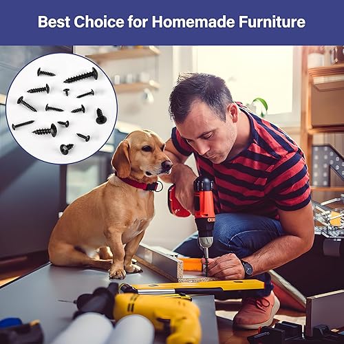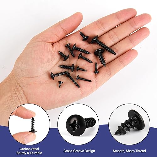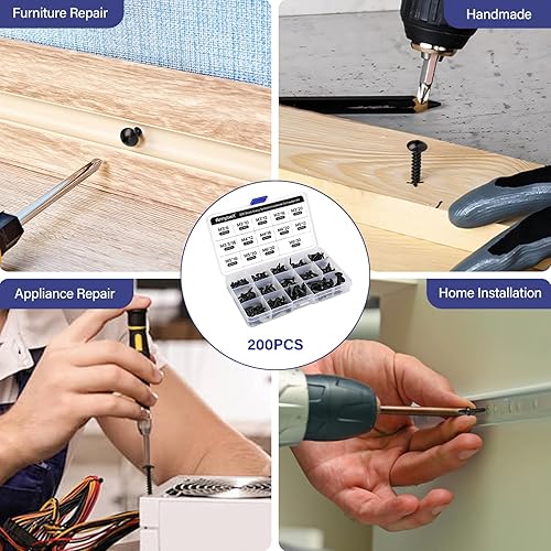200 Pezzi Croce Viti Autofilettanti Set, M3 M3.5 M4 M5 M6 Nere Assortimento Viti Autofilettanti, Acciaio al Carbonio Viti Testa Piatta, Viti Miste per Cartongesso, Legno Mobili, Riparazione