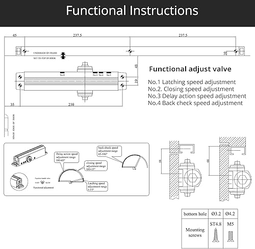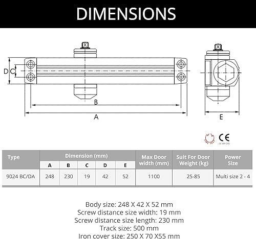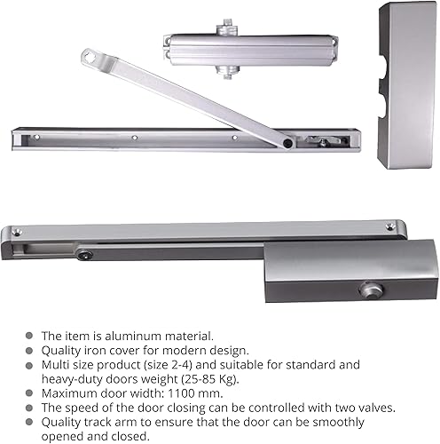 Chiudiporta idraulico automatico regolabile con braccio scorrevole e copertura in ferro per uso intensivo (nero)