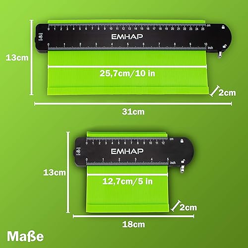 Calibro per contorni grande bloccabile con leva di serraggio extra profondo, set di 2 calibri per contorni e angoli in metallo, strumento di misurazione professionale per contorni e angoli –